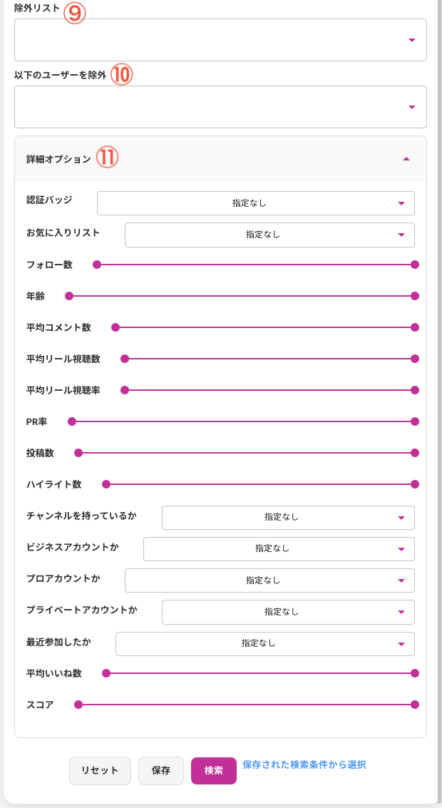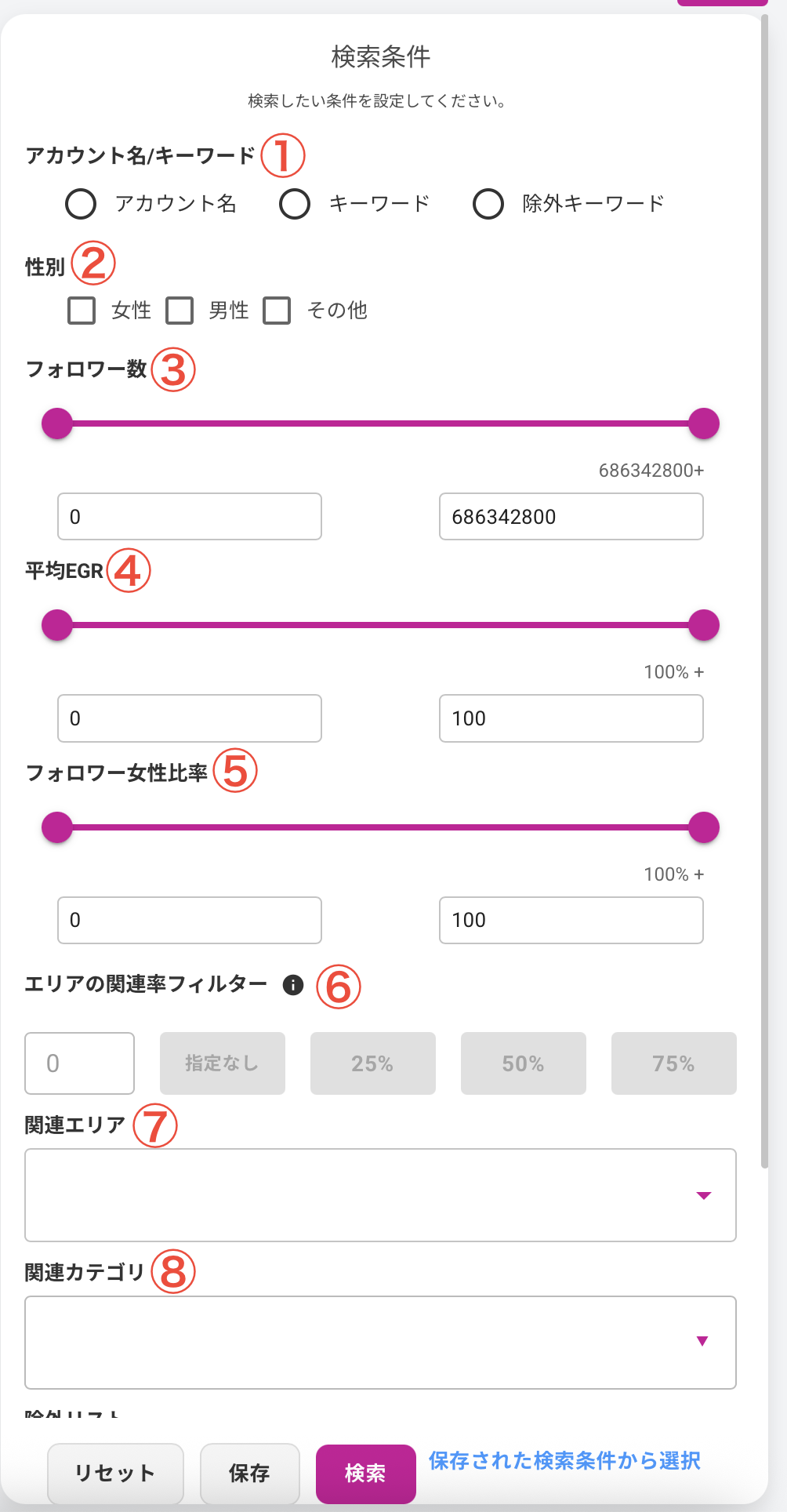 検索したいアカウントのフォロワー数を指定して検索できます。
